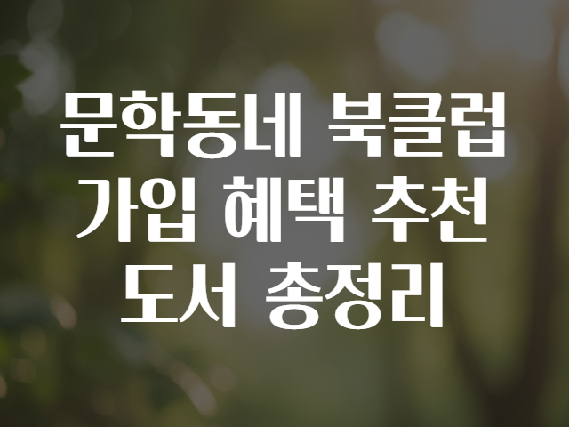 📚 문학동네 북클럽 가입 혜택과 추천 도서 총정리 ✨