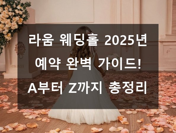 결혼 준비 중 가장 큰 고민거리 중 하나가 바로 ‘웨딩홀 예약’이죠? 특히 인기 많은 라움 웨딩홀은 매년 빠르게 마감되어 당황하는 분들이 많아요. 😱 그래서 오늘은 2025년 라움 웨딩홀 예약을 완벽하게 준비할 수 있도록, A부터 Z까지 알짜배기 정보를 드릴게요! 함께 차근차근 준비해 볼까요? 🌸💕